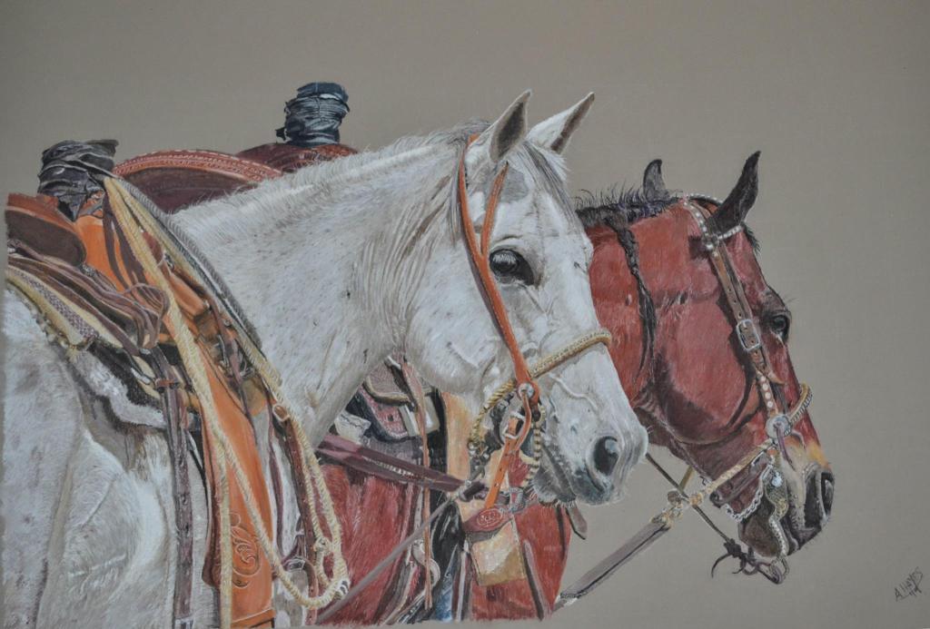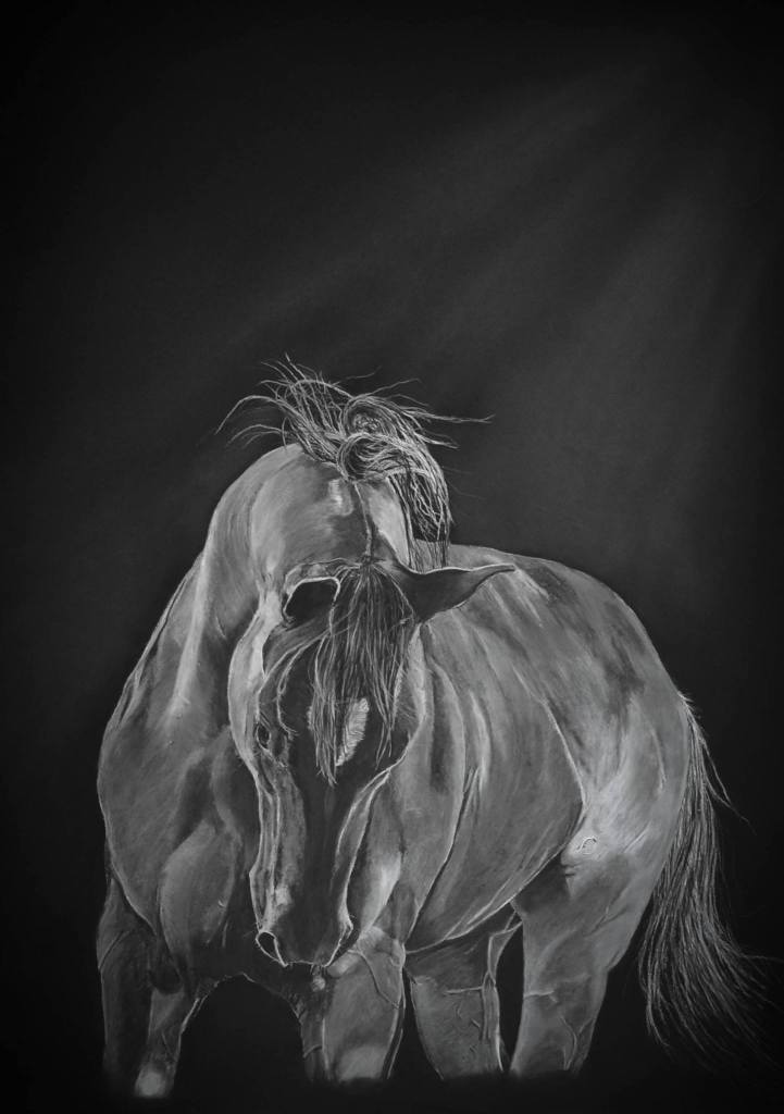 Chetnak was a legendary Indian warrior’s steed. This little fellow had attitude plus which I’m guessing his namesake had to remain a renouned warhorse. For this I used pastel pencils and charcoal on watercolour primed pastel mat.