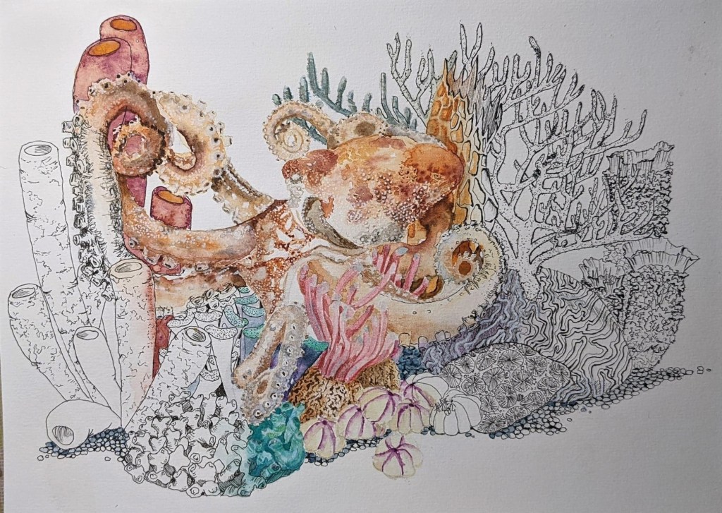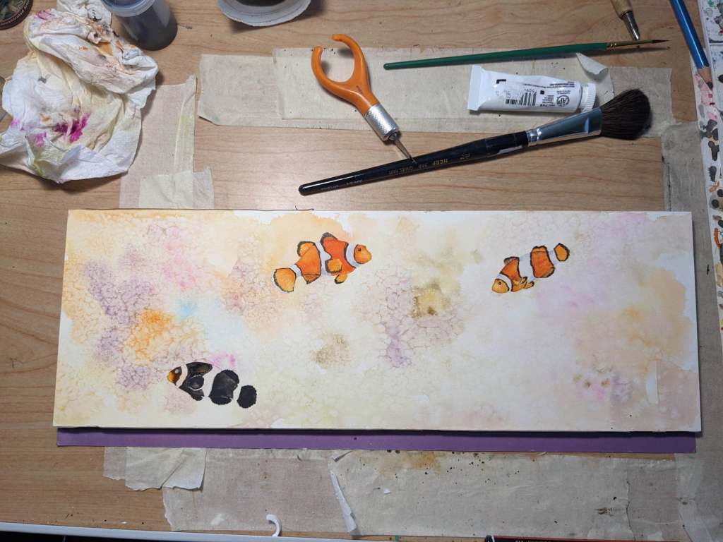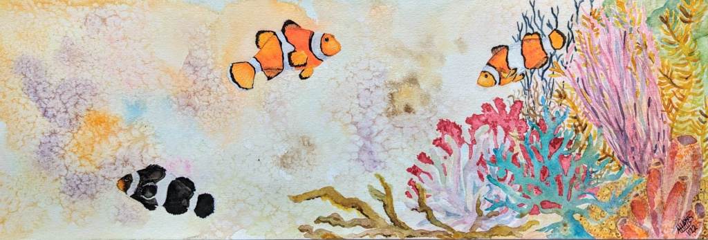 Bringing Trio to life was enormous fun. The coral reef was created using the salt technique which creates stunning textures. If you would like to learn more check out my Tutorials page.