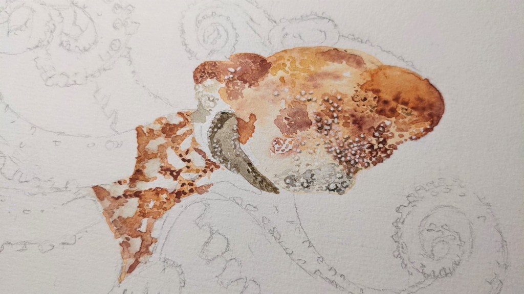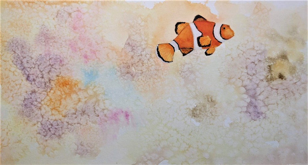 Many years ago I was gifted a set of vibrant, very unforgiving Koh-i-Noor watercolour disks, resulting in a magnificently ugly little crab amongst other disasters – and so ended my relationship with watercolours. What I envisioned did not remotely equate to what I created. In retrospect, these paints are fabulously bright, but once they hit the paper they are there to stay in that form. They cannot be reworked, blended or layered successfully. So the take home lesson is be very careful when you use them, and if you are serious about learning how to paint using this medium, invest in good qualtiy paints. I went with Windsor & Newton when I was brave enough to have another try and haven’t looked back. However every artist has their favourite brand. Find what works best for you.