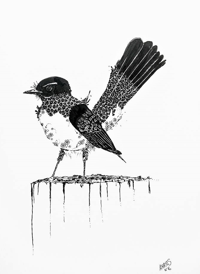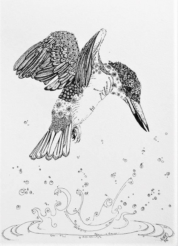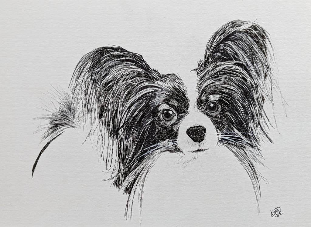 I love to mix ink with other mediums, but most of all I love its simplicity and ability to make your mistakes a part of the process – any mark is there to stay and must become a part of your drawing. It also means survival for decades plus, assuming any reasonable quality ink is used. The most engaging element of drawing with ink however is its portability, and depending on what you are drawing, it can be a quick fix of creativity for the time poor. I have a variety of small series in different styles: Dog Ink Series, Ink Scribbles, Simple Ink Doodles, Detailed Doodle Art and Digital Ink. Read more about my ink journey and tips for beginners in my Just Ink Blog.